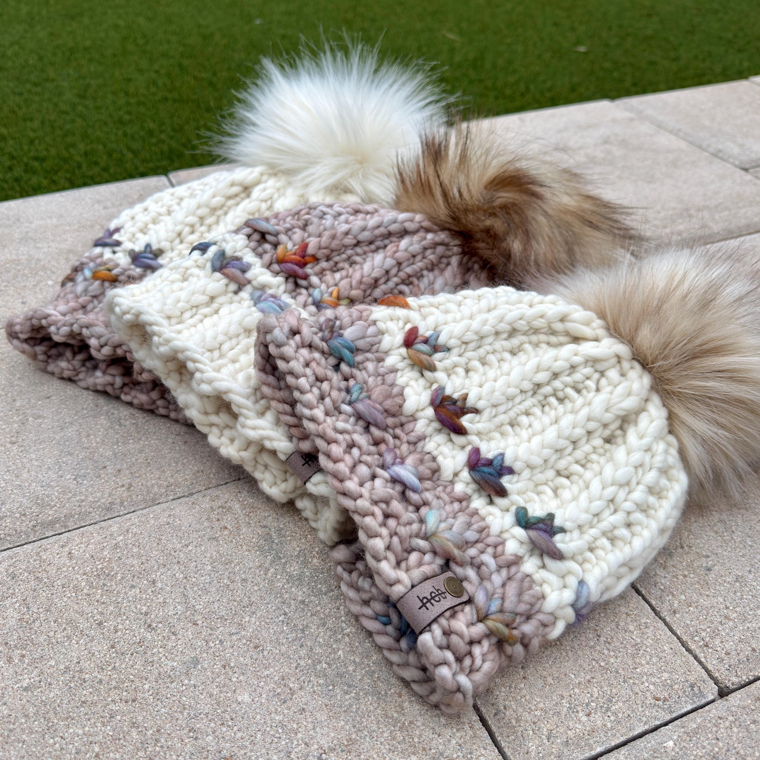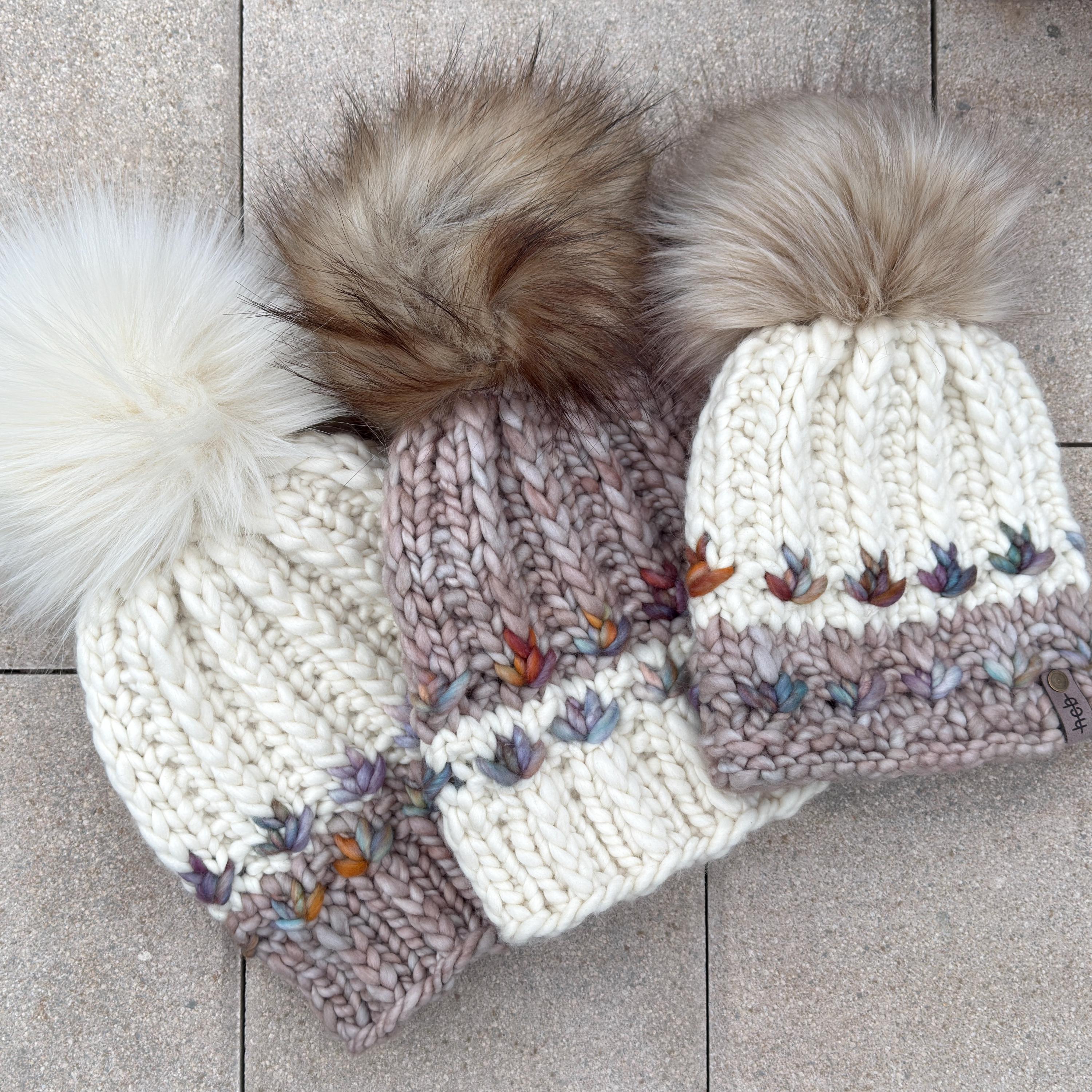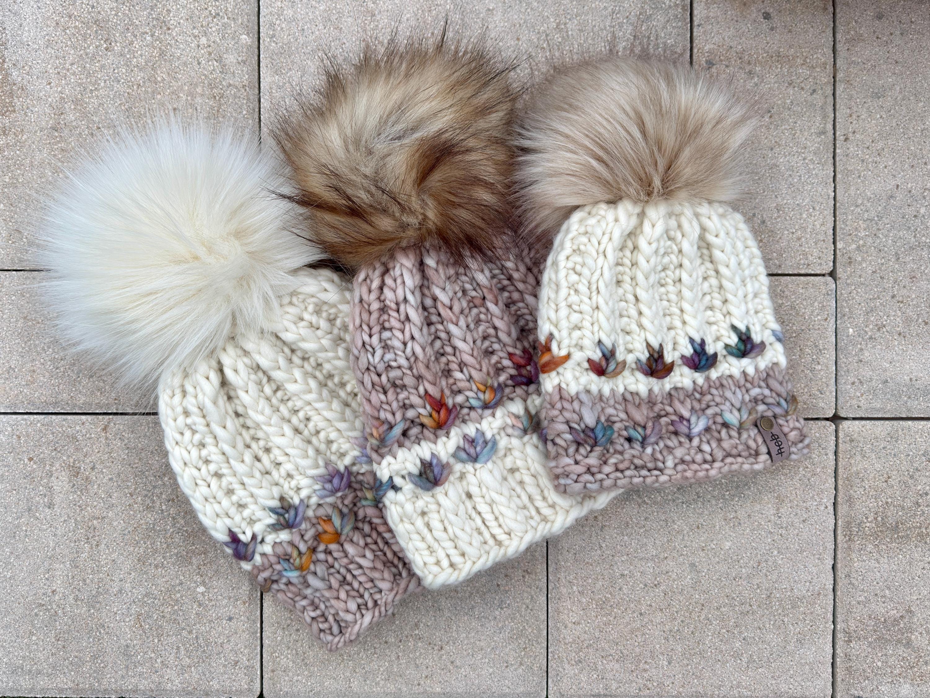 I love to knit, and each beanie is handmade by me. Designs are by many amazing designers, who will all be credited for their work.